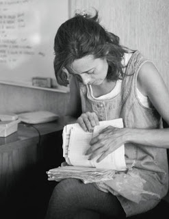 Some time later--but not much--a character from that piece of refuse knocks on your subconscious. Maybe she appears in a dream, wanting to know the rest of her own story. Maybe you are sitting on a plane and the man next to you is mysteriously familiar, and you think, "Ah, yes. That is the face of my hero that I drew in words in that old black notebook." You go looking for it. When you can't find it, you make notes on beverage napkins in restaurants to remind yourself of the next thing that happens in your story. You stuff the pieces of paper in your Bible, or in your purse, or in your wallet. When you find the notes again, you see it as a sign and begin looking in earnest for the tattered and weary notebook that you discarded in haste.